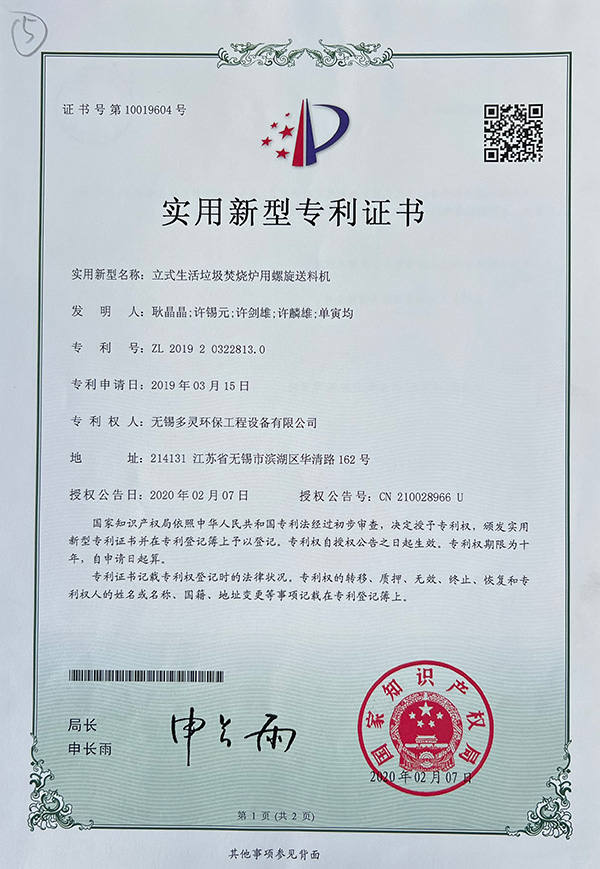 实用新型专利证书